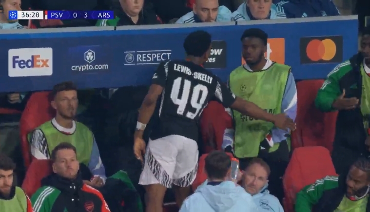 03月05日讯 欧冠1/8决赛首回合,埃因霍温主场迎战阿森纳,比赛第35分钟,阿森纳换人调整,身背黄牌的斯凯利被卡拉菲奥里换下。