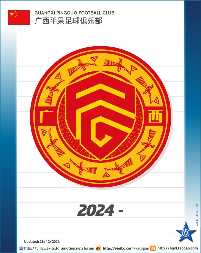 12月23日讯 博主“Bi77y”晒照,中甲广西平果更换新队徽。