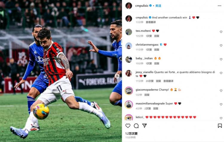 小角度抽远角破门!普利西奇社媒庆祝胜利:那么又是一场逆转♟️