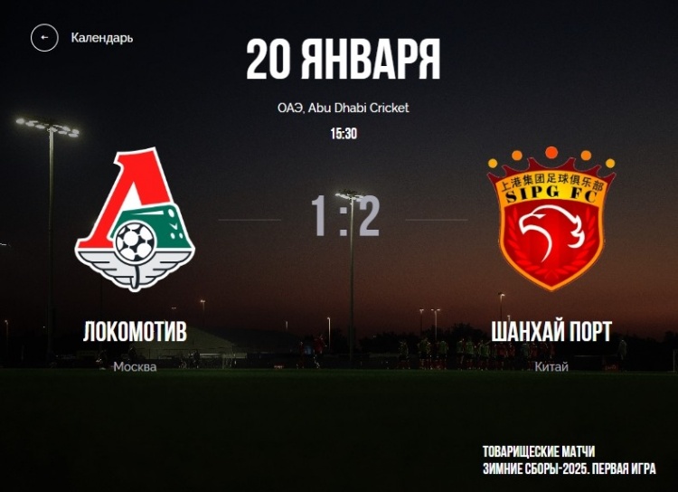 最终经过三节共90分钟的激烈比赛,上海海港以2-1的比分,战胜了俄超劲旅莫斯科火车头,取得了此次阿布扎比冬训第二赛的胜利。